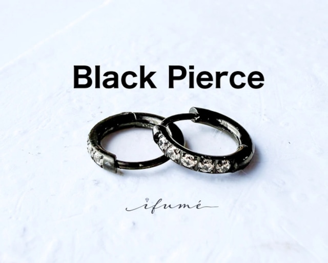 【ifumé】つけっぱなしOK!男女兼用 Blackフープジルコニアピアス SUS316 金属アレルギー対応
