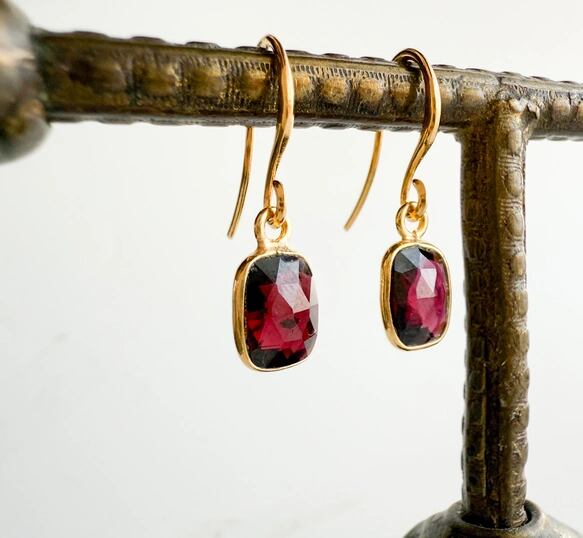 スクエアジュエリー モダンジュエリー ガーネットアクセ 大人の赤 ボルドーコーデ スクエアシルエット 上質カジュアル 天然石ネックレス フープイヤリング 秋冬アクセ