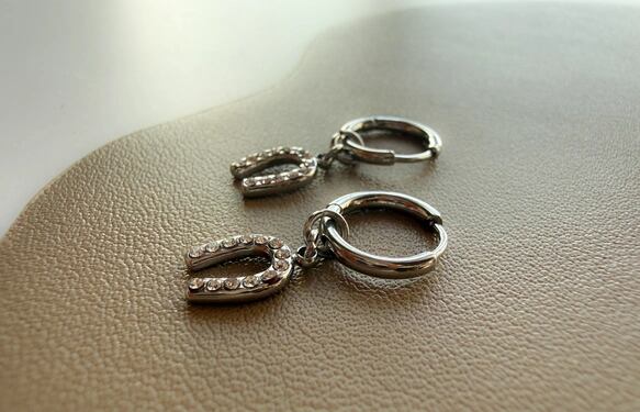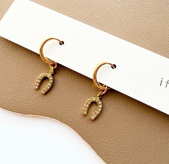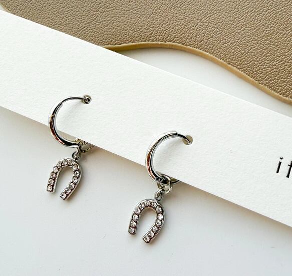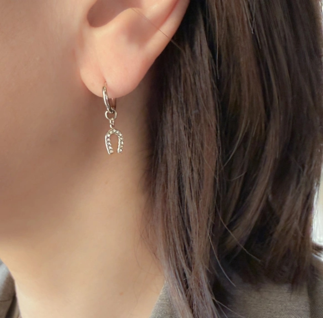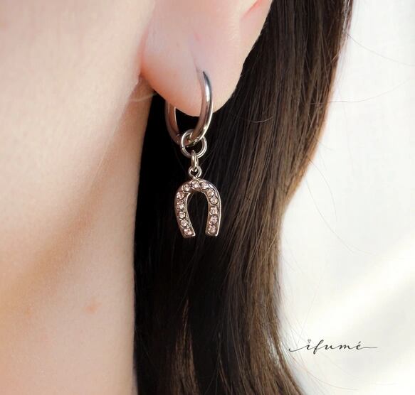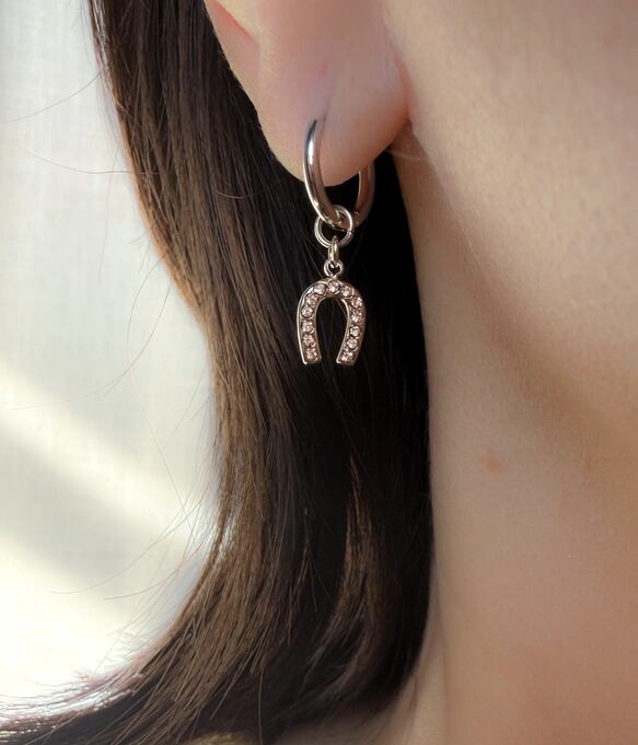 馬蹄チャームは取り外し可能ですので、フープピアスだけでもお楽しみいただけます。