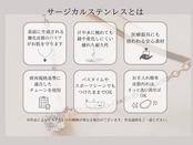 ■サージカルステンレスは医療器具等にも使われているアレルギー性の最も低い素材ですので金属アレルギーの方でも着けて頂けます。 汗や水に強く、サビたり変色せずに長くご使用頂ける素材です。 ※全ての方にアレルギーが出ない訳ではございません。万が一異常が現れた場合はご使用をお控え下さい