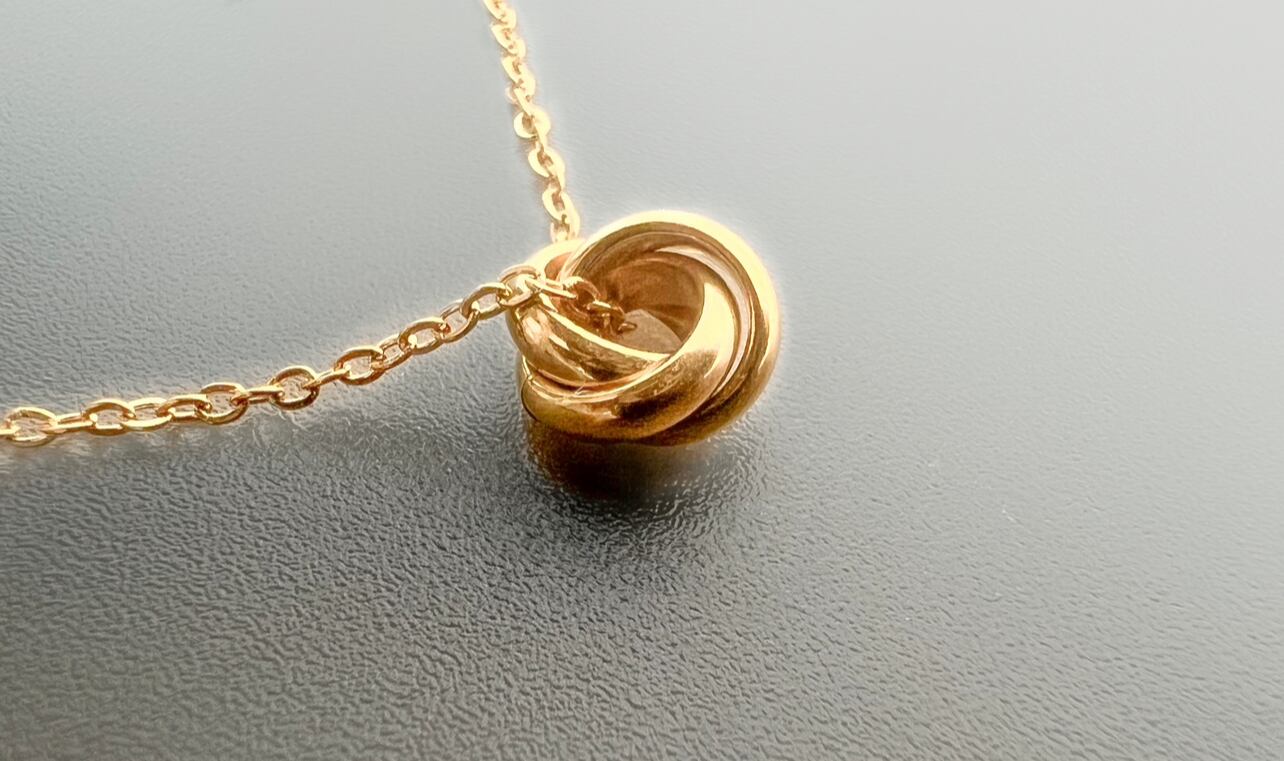 つけっぱなしOK!金属アレルギー対応 ゴールドのプチトリニティネックレス サージカルステンレス