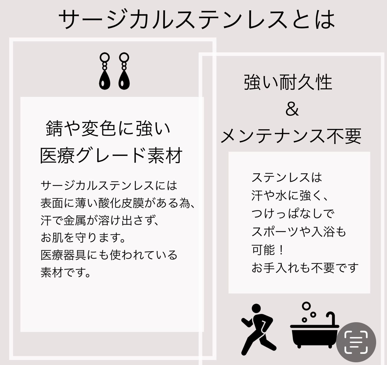※サージカルステンレス316Lは、医療器具などにも使われる、アレルギー性の極めて低い素材ですが、