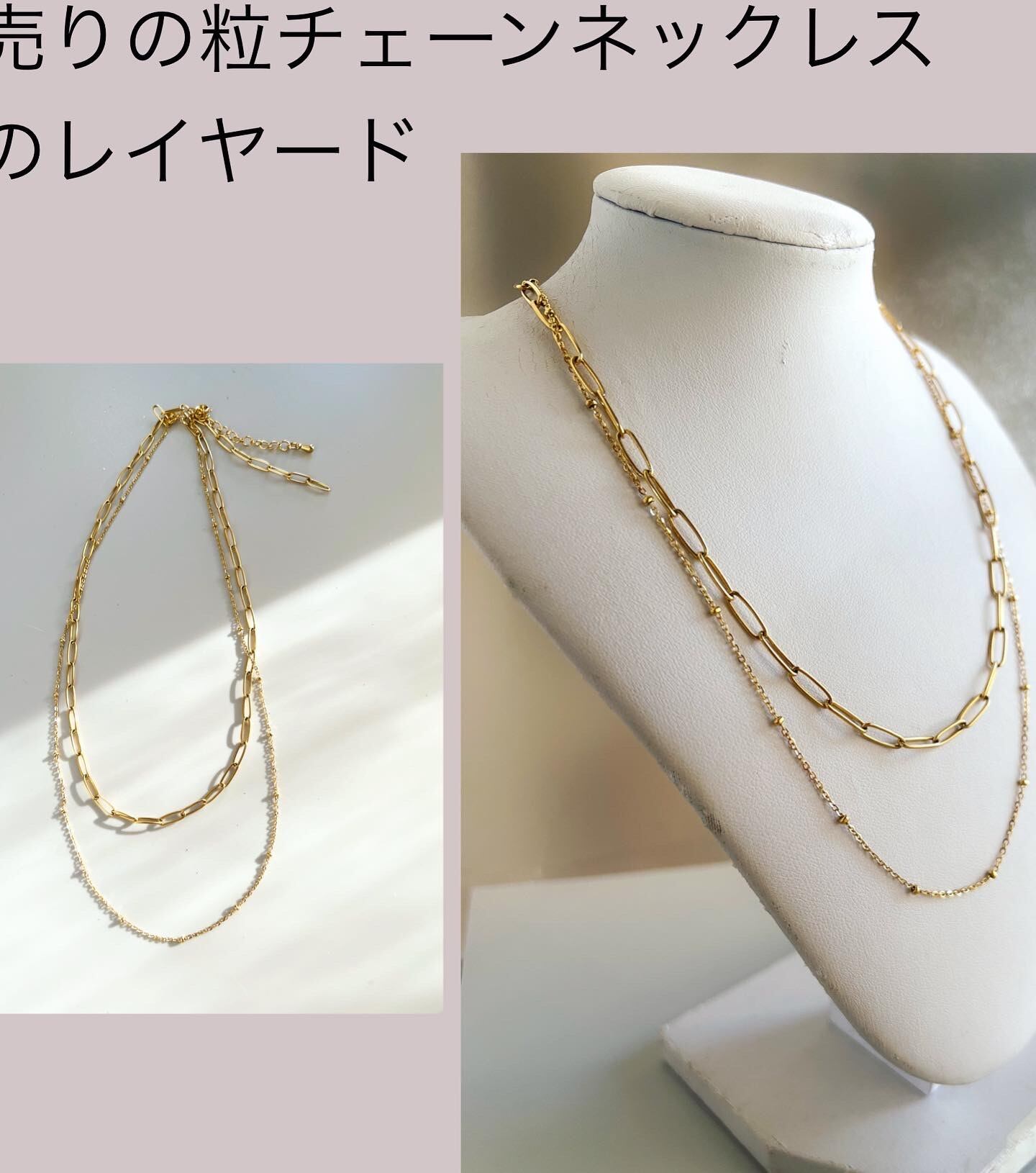 コインネックレスや粒チェーン、お手持ちのネックレスとのレイヤードにもお薦めです。