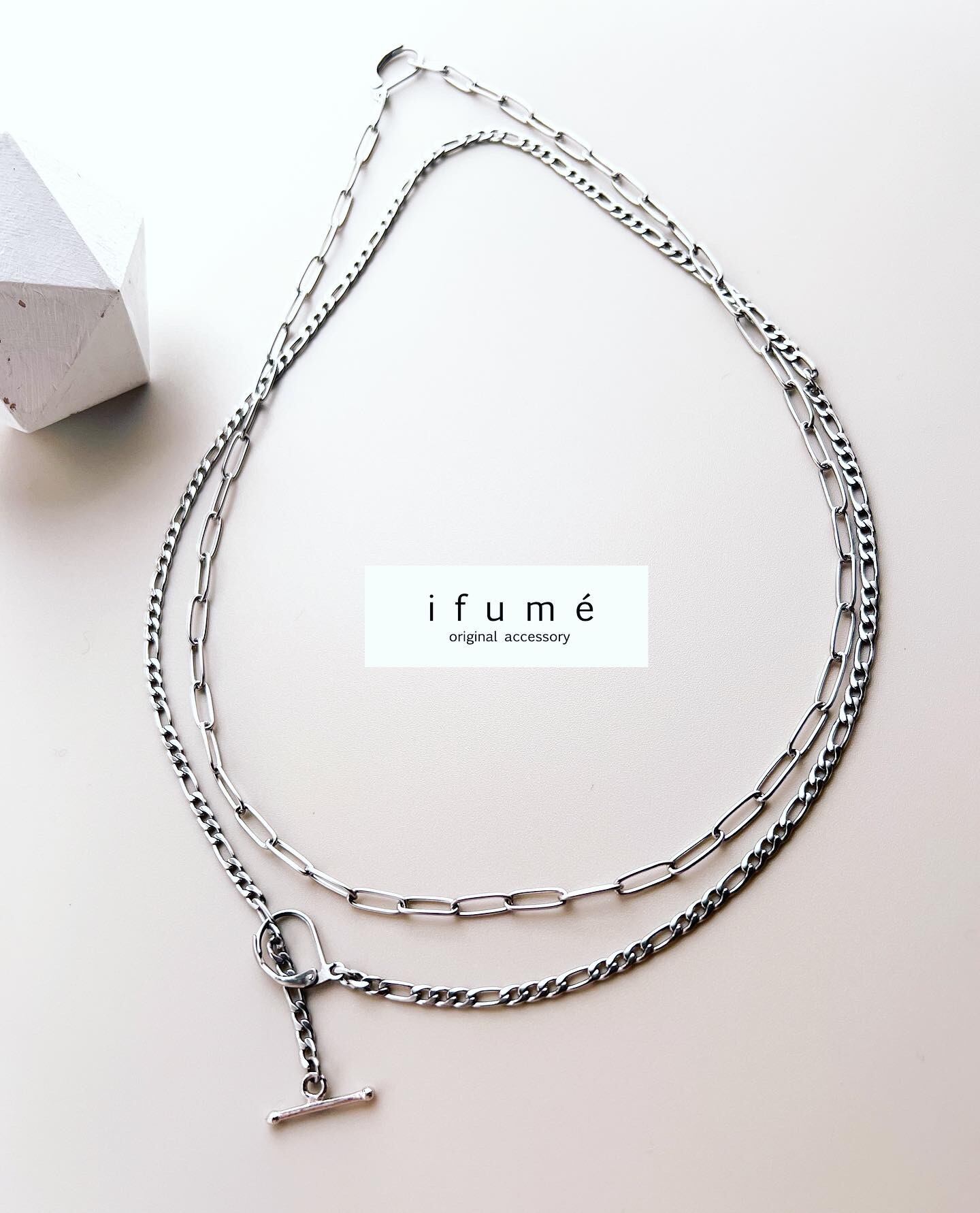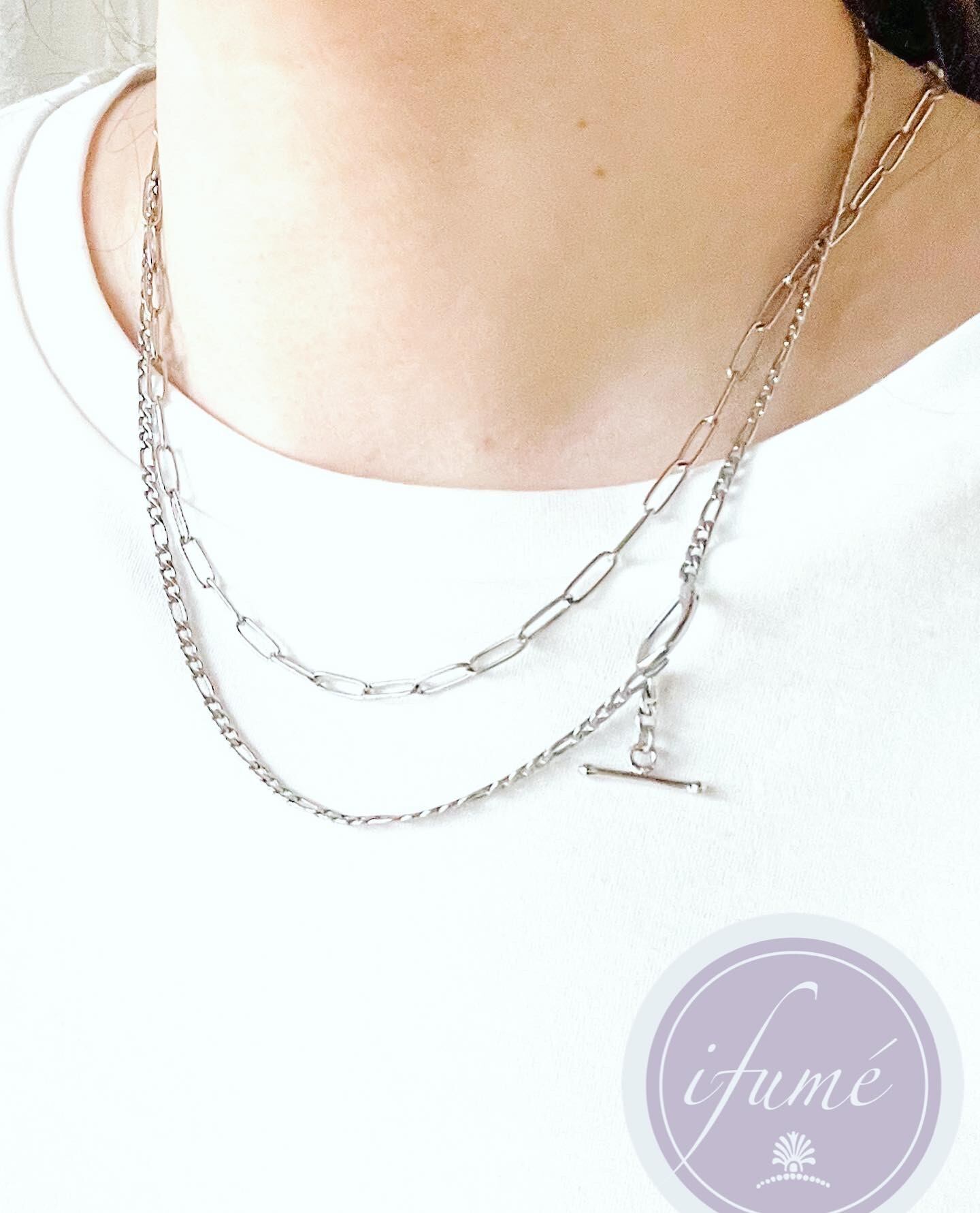金属アレルギー対応 ダブルチェーンのチョーカー&ロングネックレス