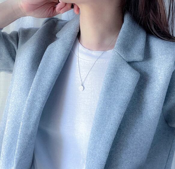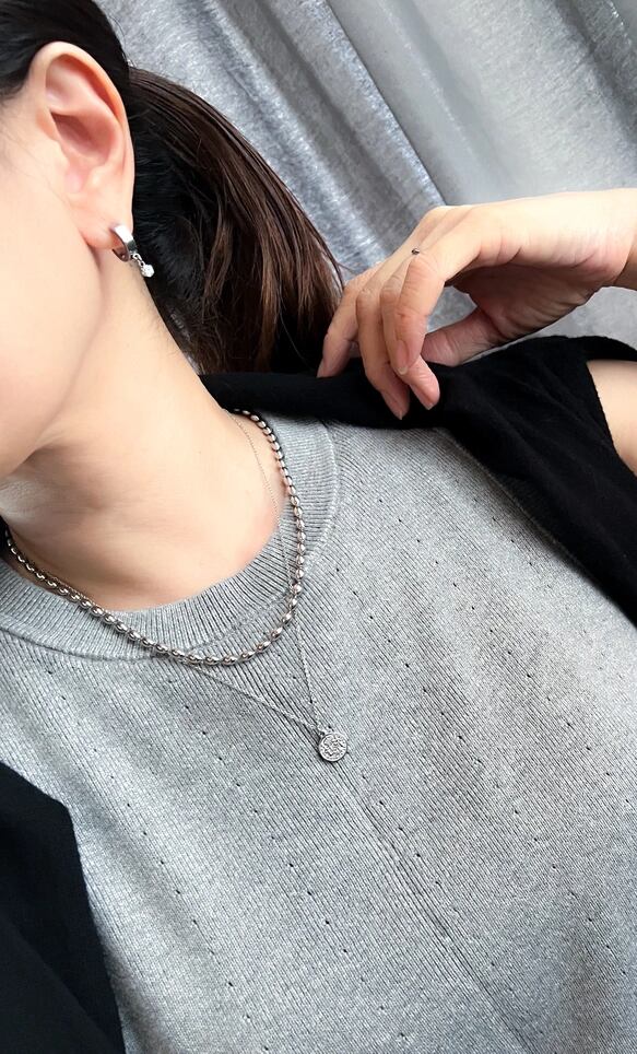 画像はボールチェーン45cm、コインネックレス50cmで着用しています。