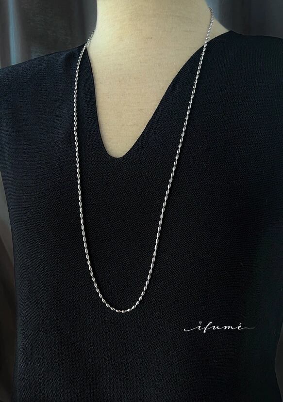 【ifumé】金属アレルギー対応 スネイク&ライスボールチェーンのロングネックレス重ね着けセット