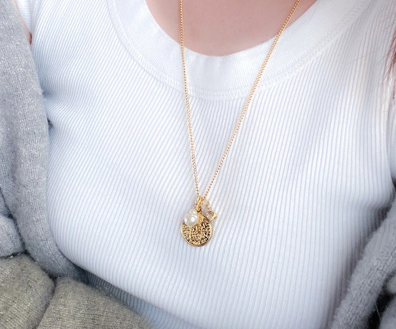 新春福袋2024 コイン パール H&Cジルコニアの着せ替えチャームネックレス サージカルステンレス GOLD